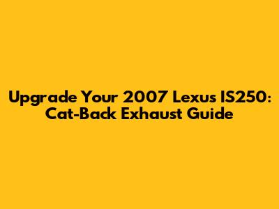 Upgrade Your 2007 Lexus IS250: Cat-Back Exhaust Guide