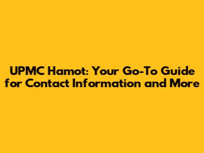 UPMC Hamot: Contact Information & Essential Details