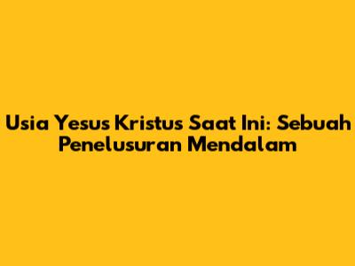 Usia Yesus Kristus saat ini merupakan topik yang kaya dengan dimensi sejarah, teologis, dan spiritual. Meskipun sulit untuk memberikan angka pasti karena kompleksitas catatan sejarah dan interpretasi teologis, kita dapat memperkirakan bahwa Yesus telah hidup lebih dari dua ribu tahun yang lalu. Pemahaman kita tentang usia Yesus bergantung pada perpaduan perspektif sejarah dan teologis, yang masing-masing menawarkan wawasan unik. Pertanyaan tentang usia Yesus mengundang kita untuk merenungkan warisan-Nya yang abadi dan relevansinya yang berkelanjutan bagi orang-orang di seluruh dunia. Dengan terus mengeksplorasi pertanyaan ini, kita dapat memperoleh pemahaman yang lebih dalam tentang iman Kristen dan signifikansi historisnya.