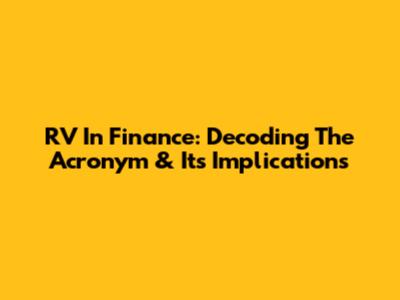 RV In Finance: Decoding The Acronym & Its Implications