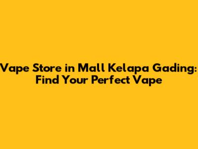 Vape Store In Mall Kelapa Gading: Find Your Perfect Vape