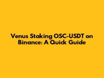 Venus Staking OSC-USDT On Binance: A Quick Guide