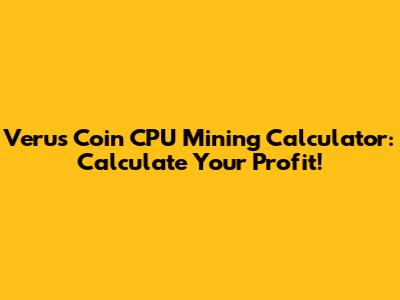 Verus Coin CPU Mining: Calculate Your Profit!