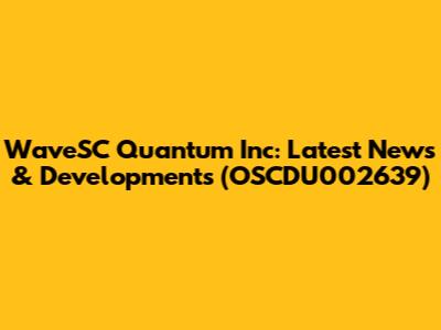 WaveSC Quantum Inc: Latest News & Developments (OSCDU002639)