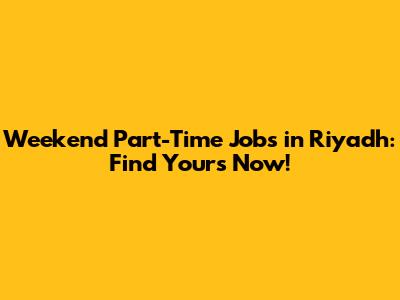 Weekend Part-Time Jobs In Riyadh: Find Yours Now!
