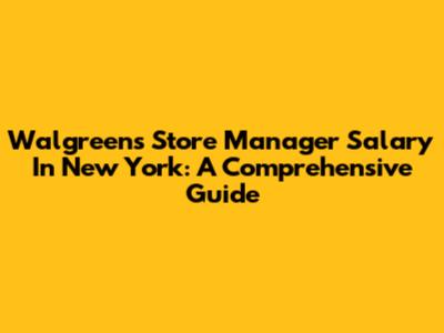 Walgreens Store Manager Salary In New York: A Comprehensive Guide