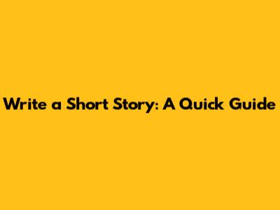 Write A Short Story: A Quick Guide