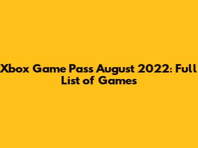 August 2022 Xbox Game Pass Lineup