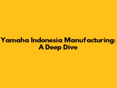 Yamaha Indonesia Manufacturing: A Deep Dive
