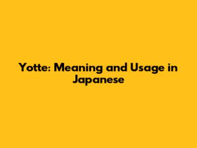 Yotte: Meaning And Usage In Japanese