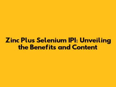 How to Use Zinc Plus Selenium IPI