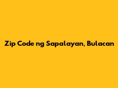Zip Code Ng Sapalayan, Bulacan